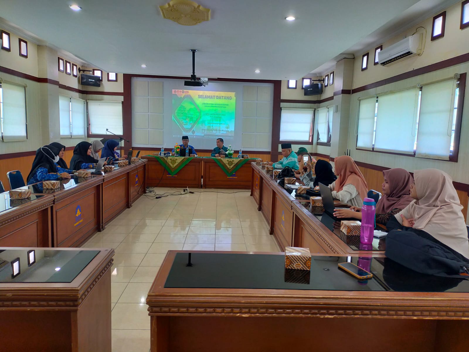 Kehadiran rombongan UIN Syahada Padangsidimpuan disambut secara langsung oleh Rektor UIN Mahmud Yunus Batusangkar; Prof. Dr. Marjoni Imamora, M.Sc, “Senang sekali kami bisa bertemu teman-teman dari Padangsidimpuan. Semoga apa yang akan kita diskusikan hari ini dapat bermanfaat bagi kedua pihak.”